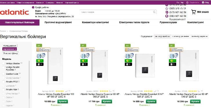 Atlantic пропонує широкий асортимент бойлерів, які вирізняються енергоефективністю та довговічністю. Горизонтальні моделі ідеальні для обмеженого простору, підмийкові – компактні для кухні, а вертикальні – для класичного розміщення. Усі бойлери виготовлені з антикорозійних матеріалів, оснащені системами безпеки та забезпечують швидкий нагрів води, що робить їх популярним вибором для українців.