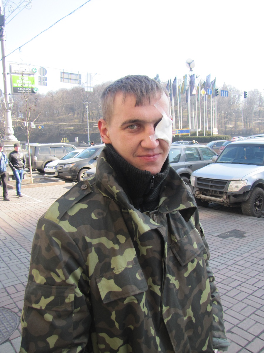 Зараз бачу навколо туман, а посередині фіолетову пляму. Наступного дня, з лікарні поранених почала забирати міліція. Попросив хлопців з Автомайдану, щоб посадили мене на потяг до Кам’янець-Подільська. Там перебув кілька днів у лікарні, а вже 1 березня з заклеєним оком повернувся на Майдан.