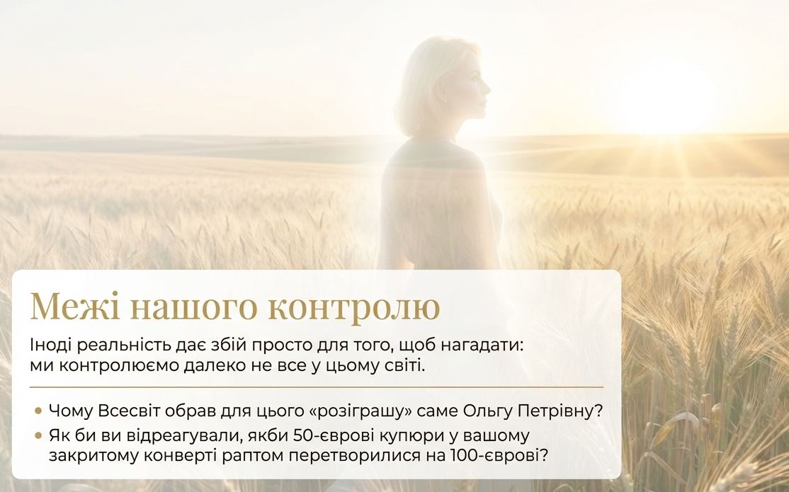 Тож для чого відбулася ця історія з Ольгою Петрівною? Навіщо Всесвіт влаштував їй такий "розіграш"? Чому їй не повірила сестра?