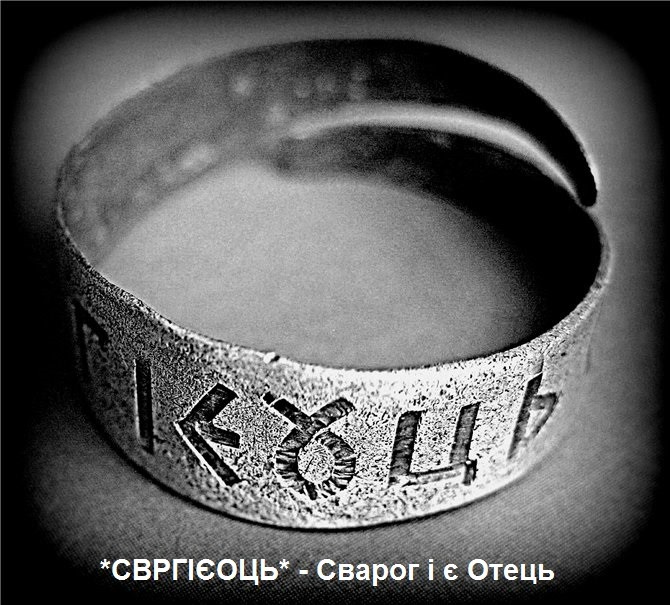 Надпис на кільці чітко витримує основні принципи сакрального письма і показує, якою була велесовична буква «О» у давнину і якою вона залишалася аж до моменту формування візантійськими монахами у 9 ст. н.е. складної, а тому не сакральної, кирилиці.