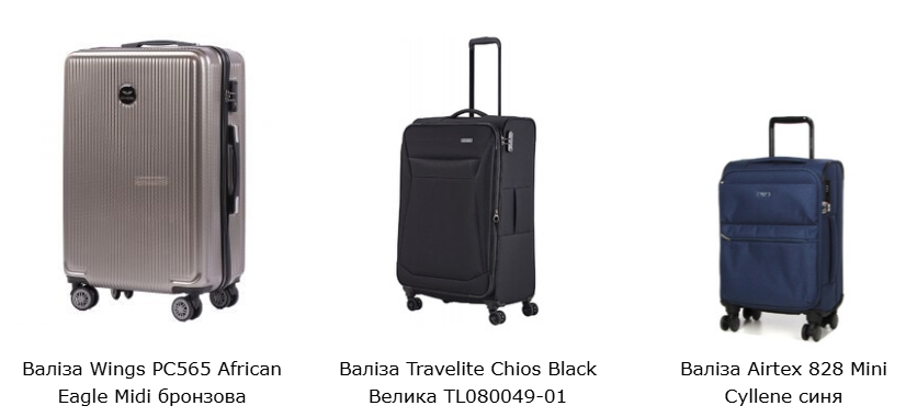 чемоданы всех размеров — от ручной клади до больших моделей для длительных поездок;